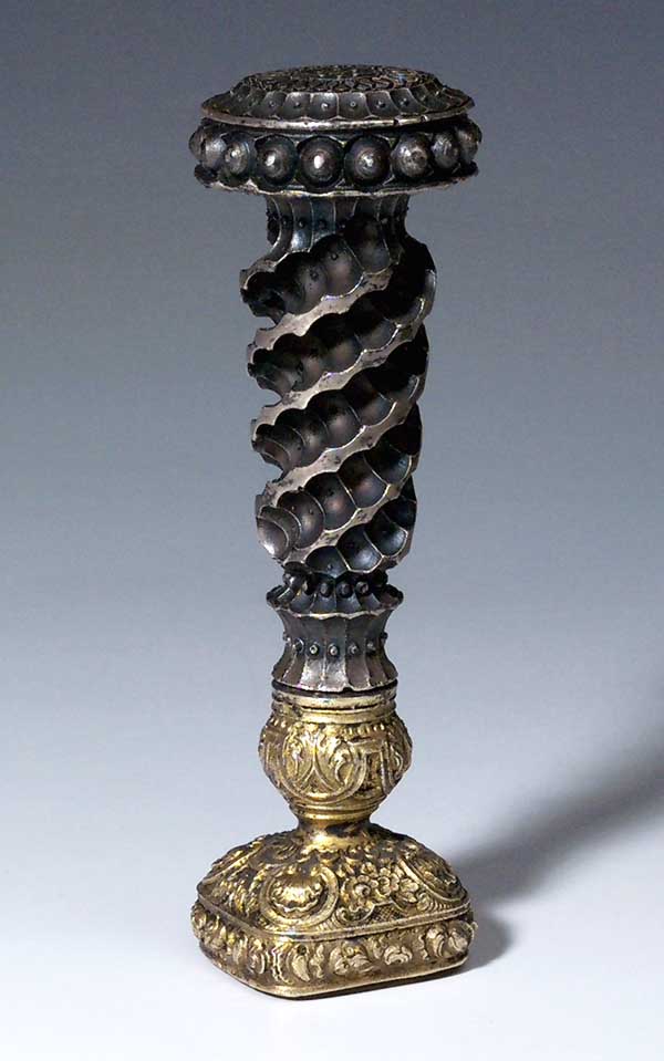 im Siegelteil, diagonal gedrehte konische Säulenform mit