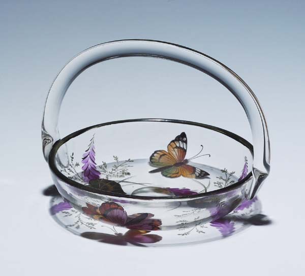 farbloses Glas mit feiner farbiger Transparentmalerei