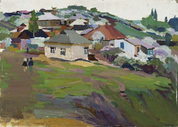 "Weite sommerliche Dorflandschaft" mit Personenstaffage