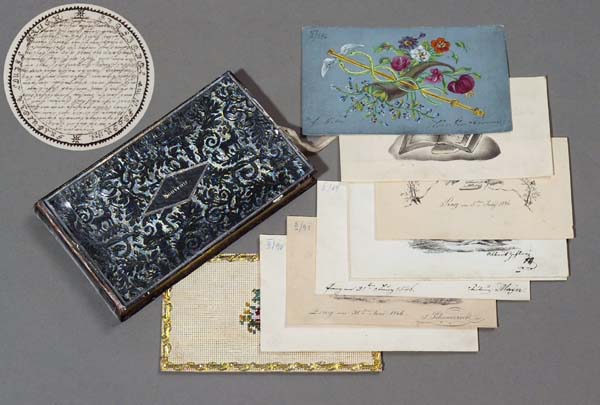 graphien, 3 Aquarelle, 1 Perlstickerei, 8 leere Blätter