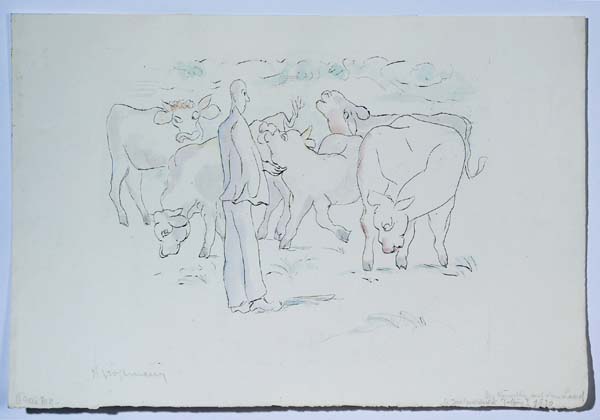 "Der Künstler auf dem Land", Lithographie, aquarelliert