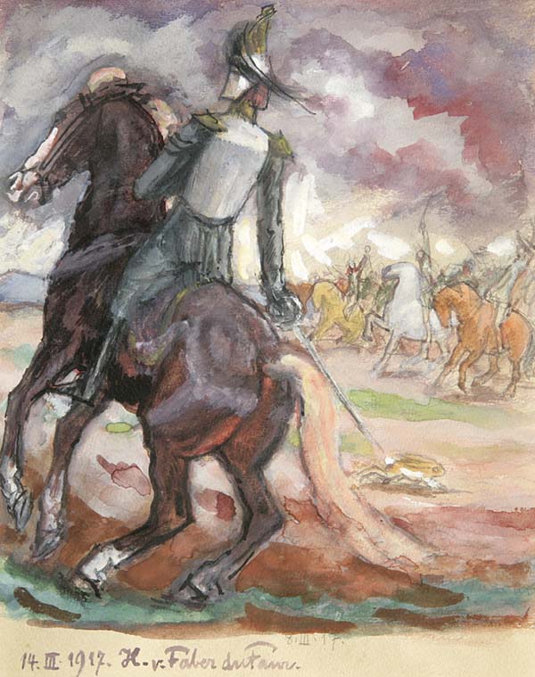 "Reiter", Gouache, signiert, datiert: 1917, im Passepartout