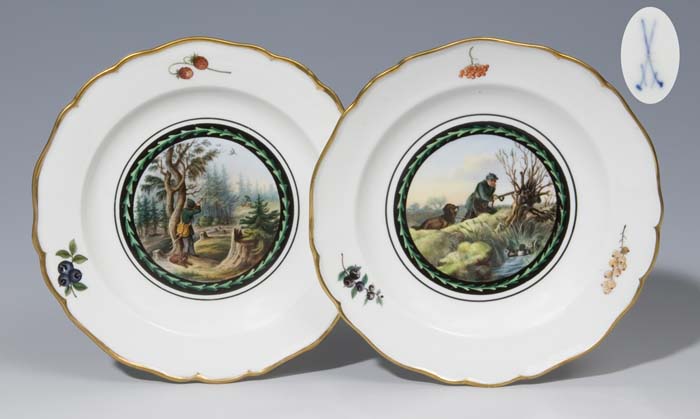 Paar Jagd-Teller.MEISSEN um 1860, zweite Wahl,