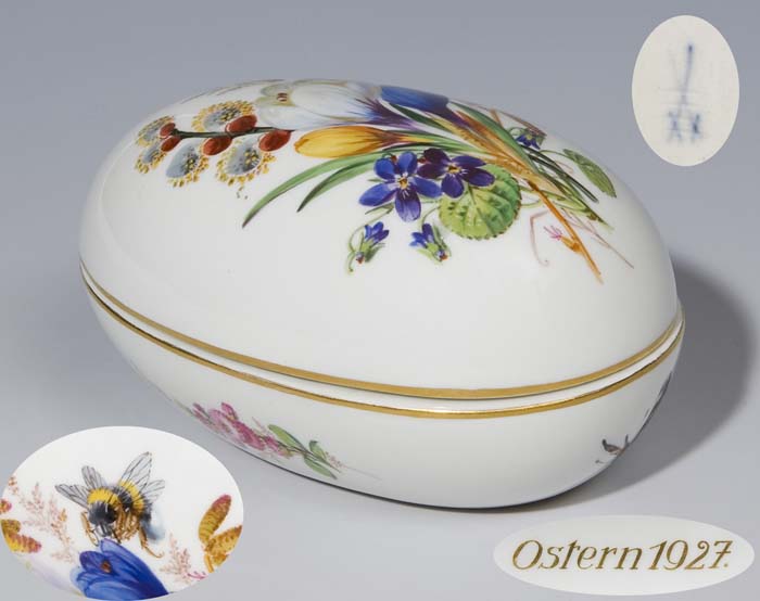 staffiert, auf dem Deckel großflächiger Osterstrauß mit