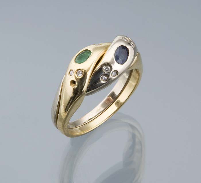 2er Satz Ringe.750er Gelbgold, 1 Saphir, 1 Smaragd,