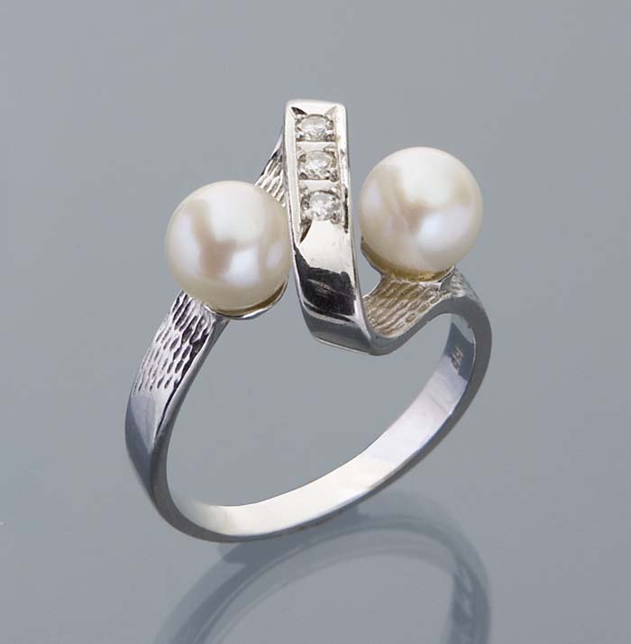 Perlen-Ring. 585er Weißgold, zwei Perlen, drei kleine