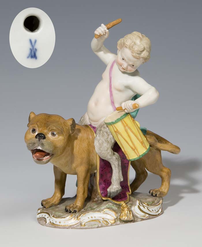 "Satyrknabe mit Trommel, auf auf einer Löwin reitend"